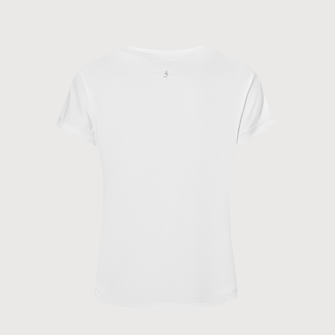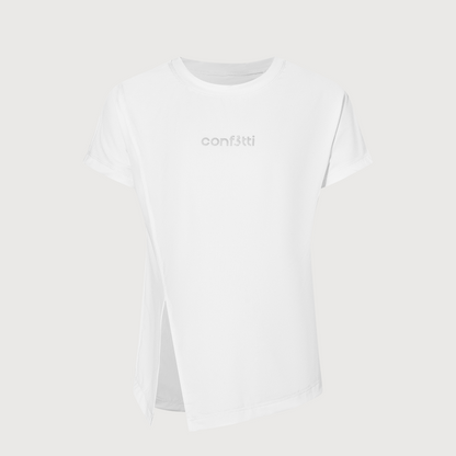 這款T卹有很多值得喜愛的地方。布料柔軟透氣,正面開衩設計時尚有趣,領口繫帶恰到好處,與緊身褲和長褲都能完美搭配。